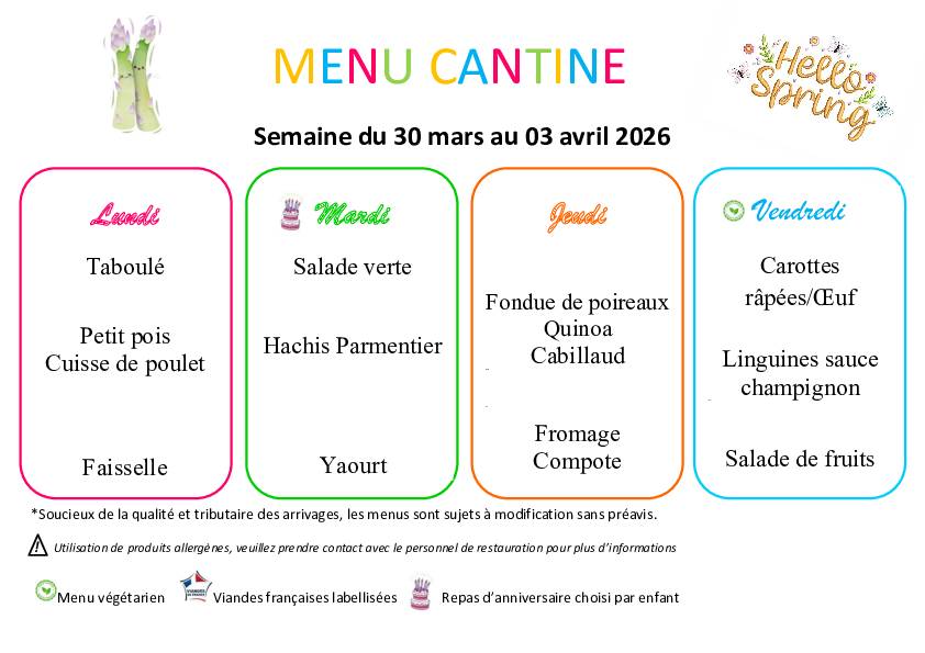 Veuillez trouver ci-dessous le menu de la semaine pour la cantine de Boffres.